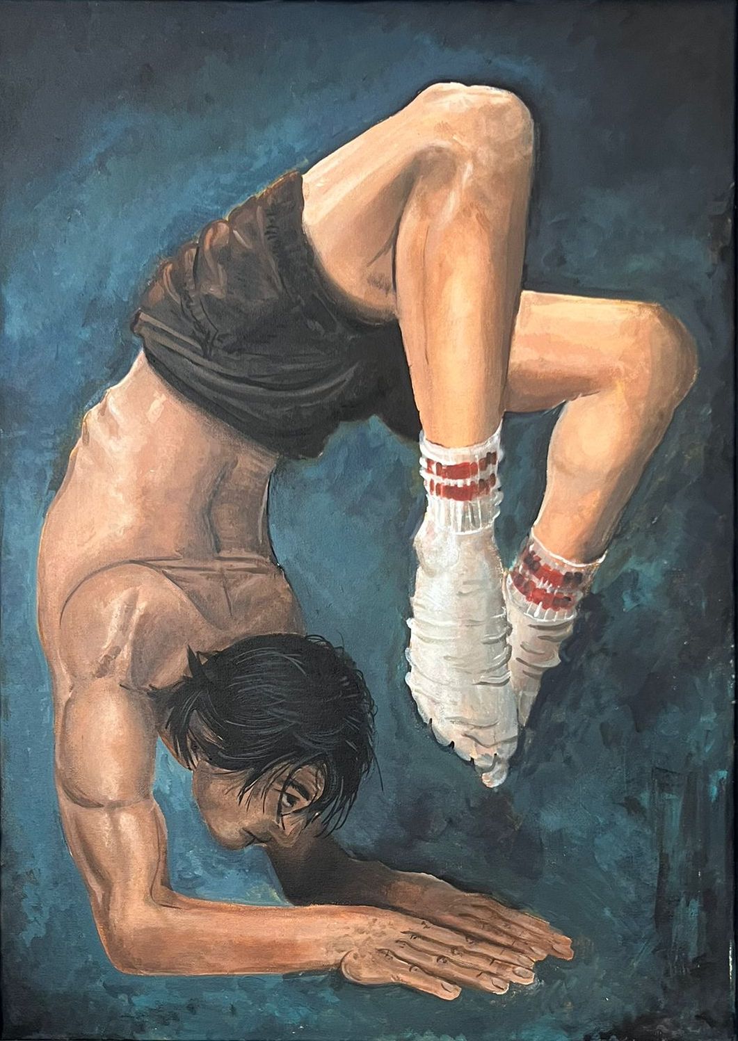 Il "Contorsionista" presents a body at the edge of form, suspended between strength and surrender. The figure twists inward, folding space around itself, as if retreating into a state of pure being. There is no audience, no stage—only the act, stripped of spectacle. The absence of context creates a sense of timeless isolation, where the body becomes both question and answer. Light reveals tension; shadow suggests interior depth. Every line of muscle speaks of discipline, yet there is softness in the pose, a meditative stillness. The work invites us not to observe, but to contemplate. It is less a depiction of movement than a portrait of inner geometry.